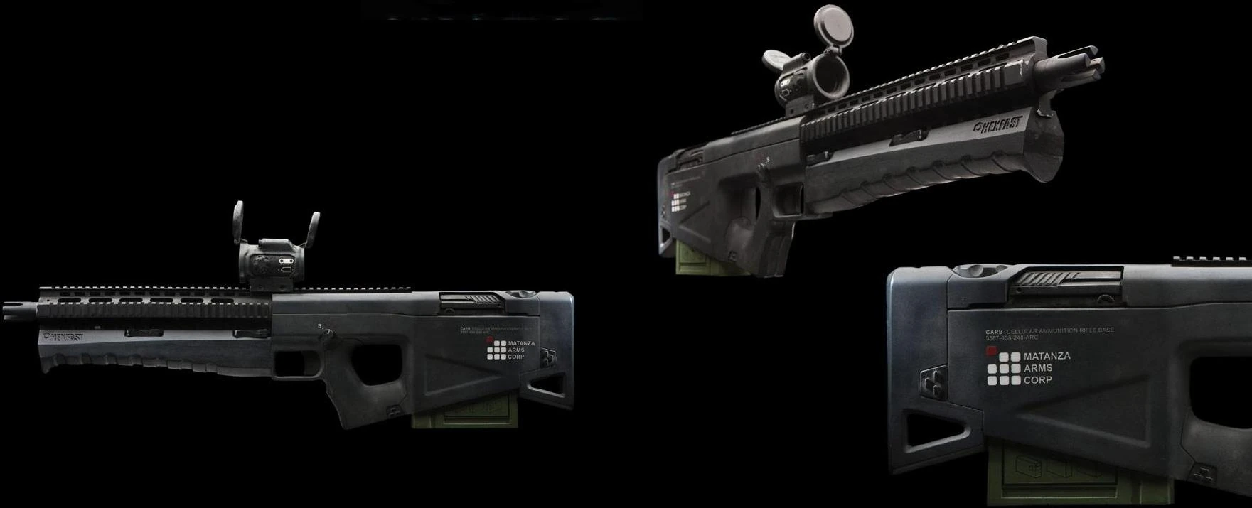 Jest on wytwarzany przez wojska ZPZ, a dokładnie przez korporację Matanza Arms. Sam karabin jest częścią modularnego systemu broni o nazwie CARB (Cellular Ammunition Rifle Base). Ów system składa się z trzech rodzajów broni: Karabinu szturmowego, Strzelby Śrutowej CARB oraz krótkich Broni Obrony Osobistej (PDW).