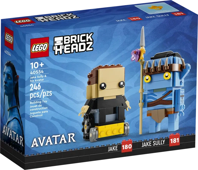 Zestaw z serii LEGO BrickHeadz przedstawia Jake'a w jego ludzkiej postaci, z doczepianym wózkiem inwalidzkim, a jako avatar, z włócznią Na'vi. Obie wersje postaci można postawić na solidnych płytkach konstrukcyjnych, dzięki czemu idealnie nadają się zarówno do zabawy, jak i do ekspozycji. Kolekcjonerzy zestawów LEGO BrickHeadz mogą też bawić się w łączenie obu modeli i tworzenie własnych, zwariowanych hybryd postaci.