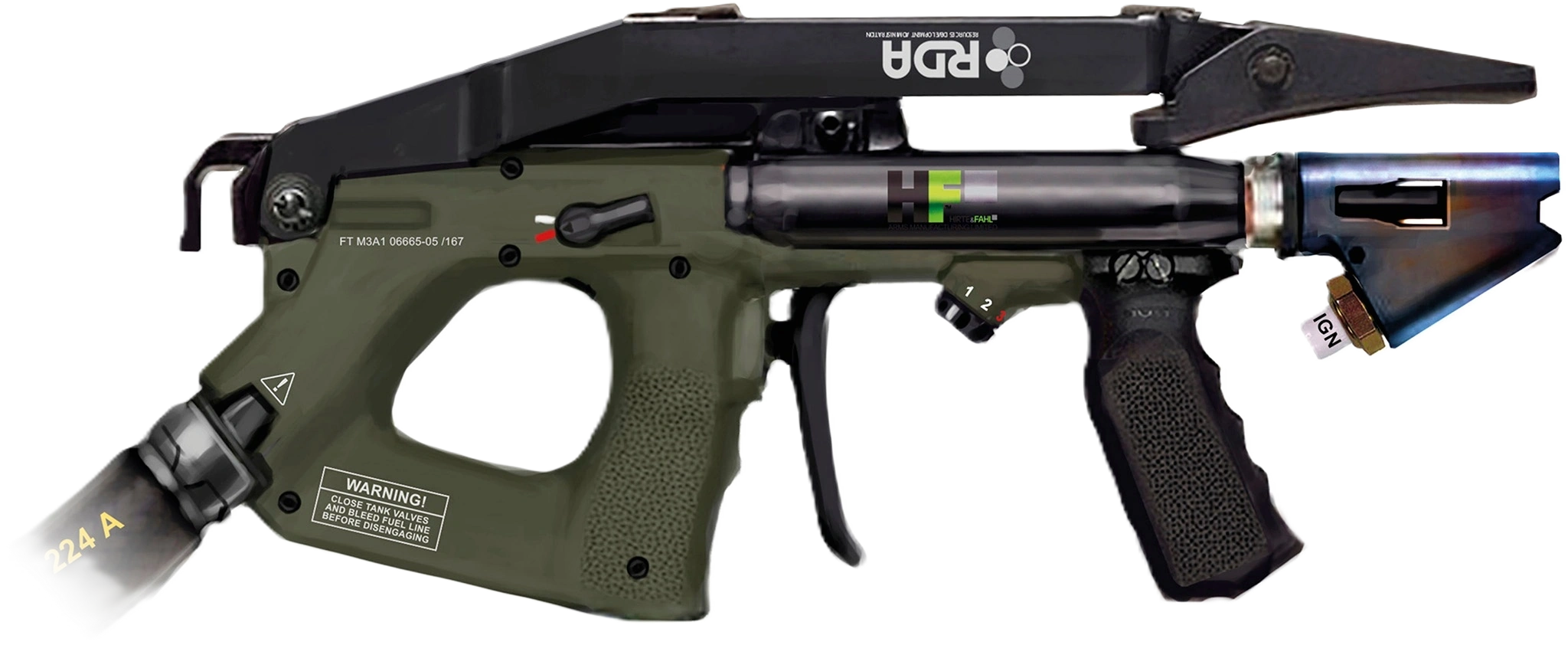 Miotacz ognia FT-M3A1 przeznaczony dla rekombinantów i operatorów kombinezonów szkieletowych, najczęściej wykorzystywany do defoliacji, czyli oczyszczania terenu z roślinności oraz zwalczania wrogiej piechoty.