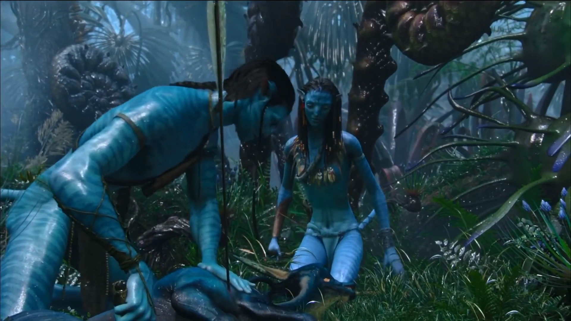 Gdy wiele tygodni później Jake kończy naukę obyczajów Omatikaya i ma zostać dopuszczony do rytuału Iknimaya, w towarzystwie Neytiri tropi i zabija swojego pierwszego sześcionoga. Powala go strzałą, po czym dobija nożem i odmawia nad nim modlitwę do Eywy.