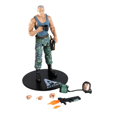Ze swoim pełnym wyposażeniem bojowym, karabinem, toporem i nożem, Jake Sully jest gotowy do ostatniej bitwy. Wkracza do akcji z 22 punktami artykulacji, wysokiej jakości rzeźbą i dekoracjami, karabinem, nożem i toporem, stojakiem kolekcjonerskim oraz specjalną bioluminescencją aktywowaną światłem ultrafioletowym.– Opis figurki ze strony McFarlane[28].