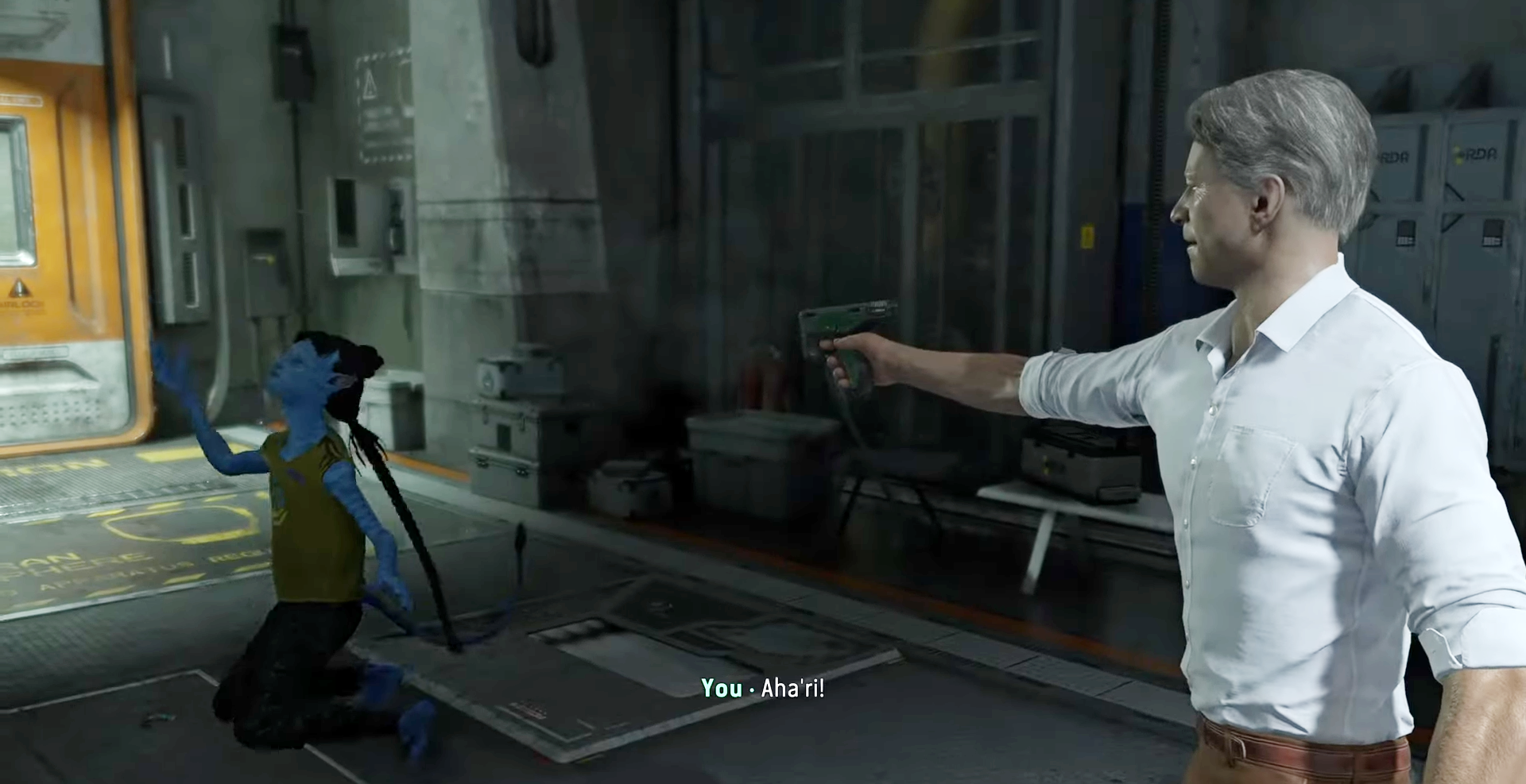 Some time later, at night, Aha'ri, Nor and the protagonist argued with Teylan, who was the only one who seemed to believe in Mercer. Aha'ri reminded him of how they really got to TAP. She hummed Sarentu's song and then convinced the rest of the group to rebel and escape from the facility. However, the attempt failed and the children were detained by Mercer. Aha'ri began a chant, which the rest of the children took up, and confronted John again, saying that she felt Na'vi and wanted her freedom back. As she walked towards the door, she was killed by Mercer with his gun, much to the shock of the Sarentu children.