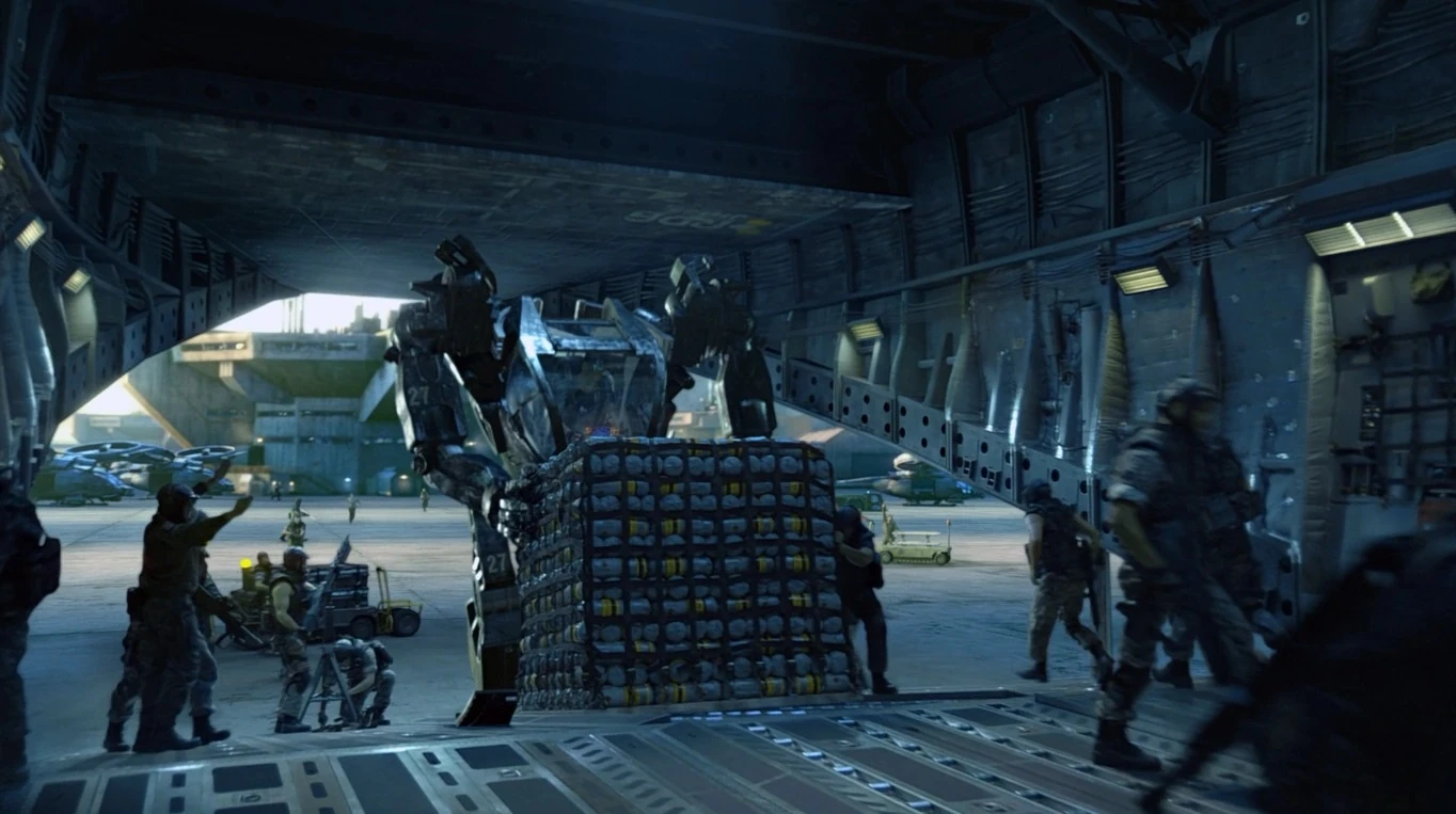AMP suits are seen in many parts of the film, where they are assigned mainly to base defense and patrol duties. Jake Sully is assigned to Col. Quaritch and finds him at the hangar ready to enter and activate his AMP suit.