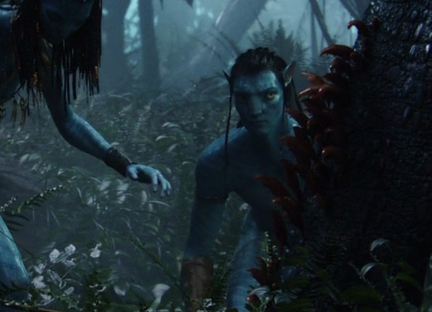 Jake Sully and Neytiri pass a cat ear while hunting.