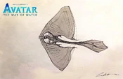 Its body has intricate patterns that run along both the upper portions of their body and their fins. They have a single tail fin which helps thrust them while swimming. Like most Pandoran creatures, the glider fin has two pairs of eyes.