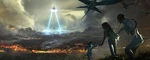 In order to accomplish this task, the ISV would use its high thrust matter-antimatter engines for vertical atmospheric entry and descent. As the ISV got closer toward the exomoons surface, the searing high energy exhaust flares would burn the surrounding landscape, sending fire storms over a 20-mile-wide radius (creating an extra defense layer for the landing module and surface teams). The ISV wouldn't completely land, and instead it would hover to act as a colossal sky crane lowering a “sling load” via a massive extendable/retractable cable directly onto the ground. Once a module has landed, the ISV releases its cable connections and then ascends back into orbit. Heavily armed RDA troops equipped with AMP Suits would then quickly be deployed from the landing module to create a secure perimeter followed by massive bulldozers to clear the debris.