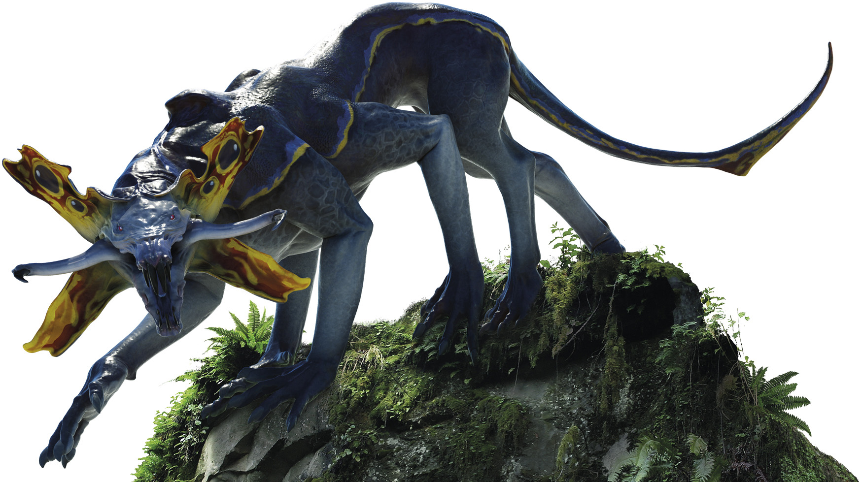 A rather aggressive herbivore with an armored head that fiercely defends its territory. First seen in Avatar: Frontiers of Pandora. | |