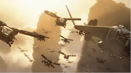 The Na'vi fighting the RDA in the skies.