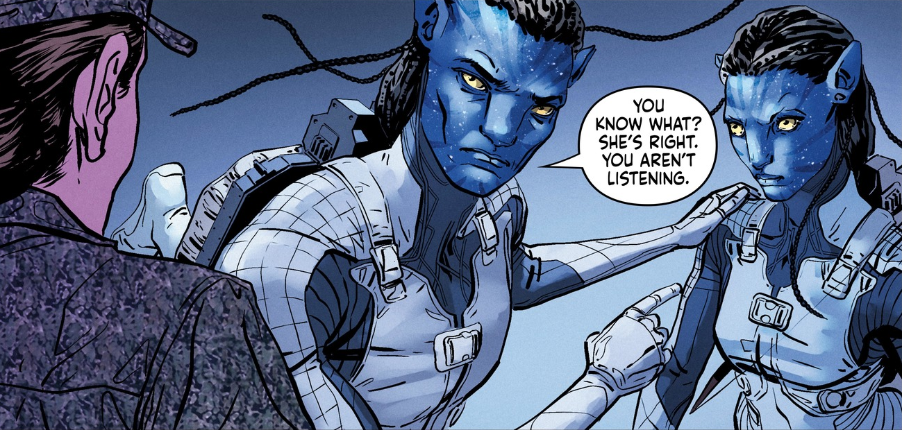 Jake and Neytiri confronting Ardmore.