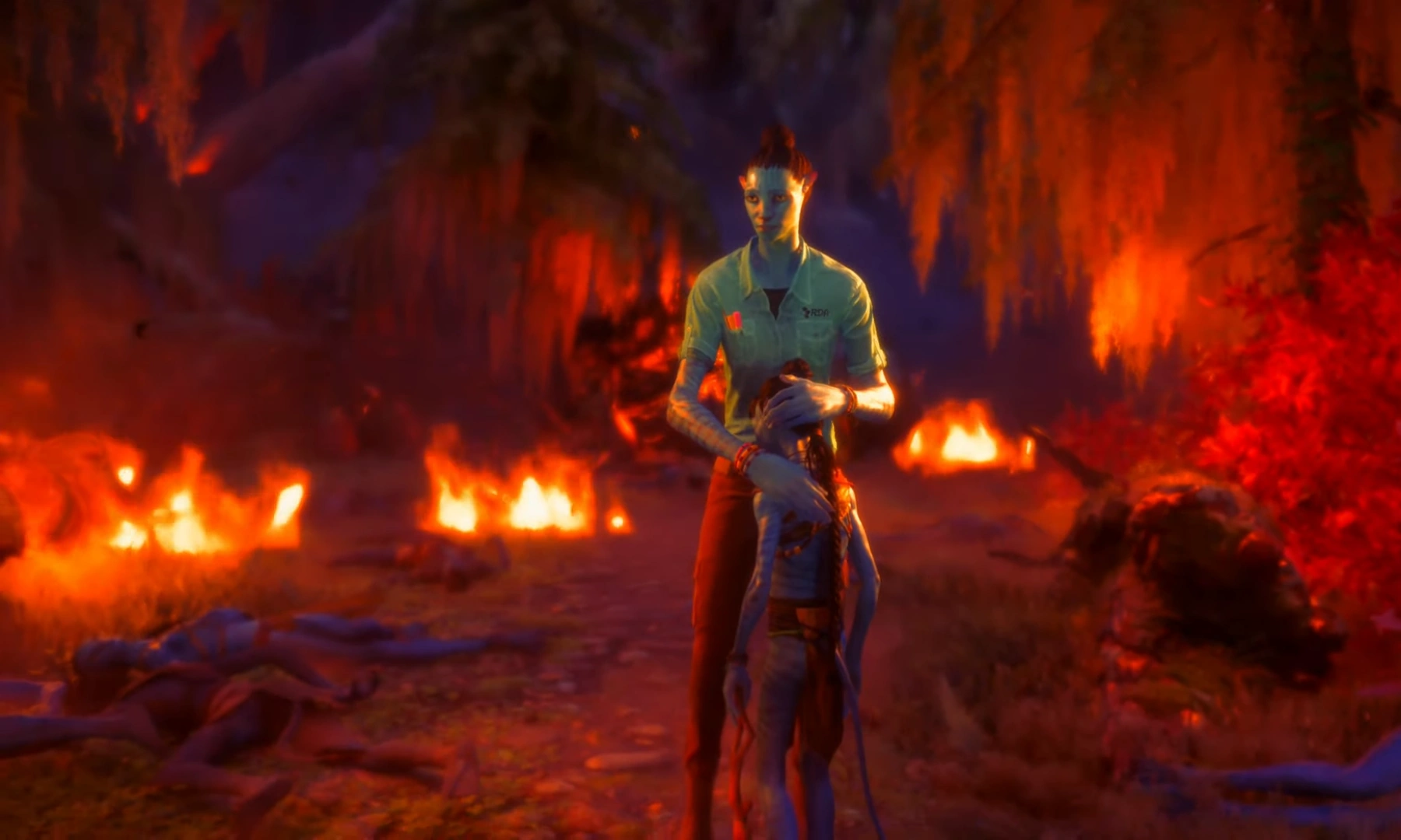 The RDA setting Pandora's forests and animals on fire during its return.