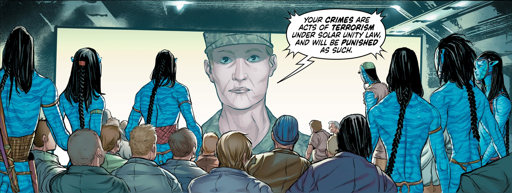 The organization arrived in ten heavily armed spaceships. The new head administrator Charles Stringer along with general Frances Ardmore threatened the occupants of Hell's Gate to surrender and be given amnesty, or die. This worked for most of the humans on Pandora, as more than half of them complied. Instead of doing nothing, Jake along with the Na'vi and humans who were willing to fight attempted to once more drive the RDA away.