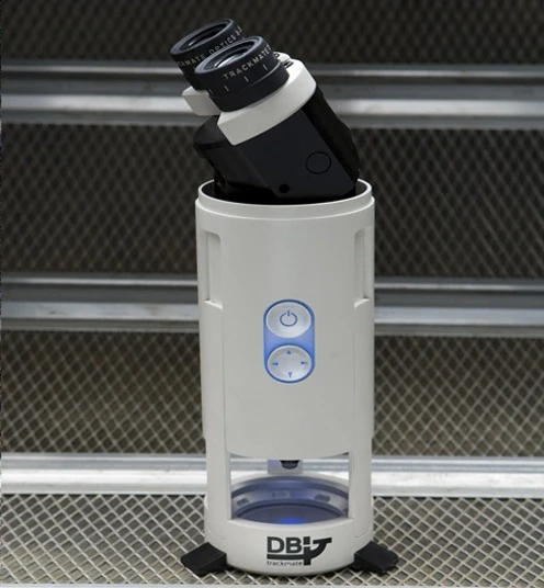 The Trackmate is a small high tech microscope capable of 250 times magnification. The RDA use these in their laboratory in Hell's Gate, so that scientists may study the cellular makeup of Pandoran vegetation. The angle of the eyepieces on the top is adjustable, and they can slide into the body of the device for storage. It is manufactured by DBI.